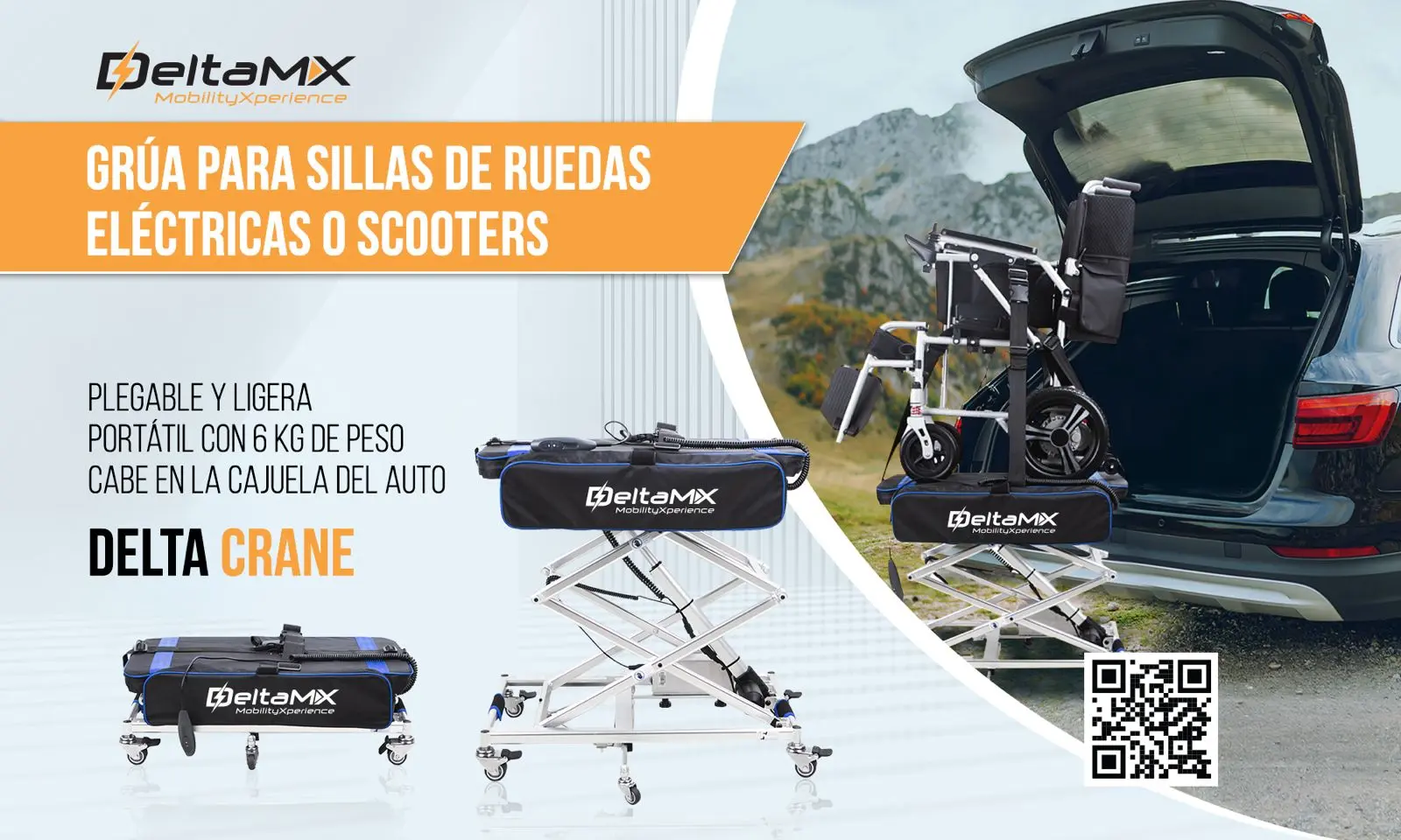 Delta Crane es una grúa ultraligera, plegable y portátil, diseñada específicamente para brindar movilidad, comodidad y eficiencia en el manejo de sillas de ruedas o scooters al subirlos y bajarlos de un vehículo.