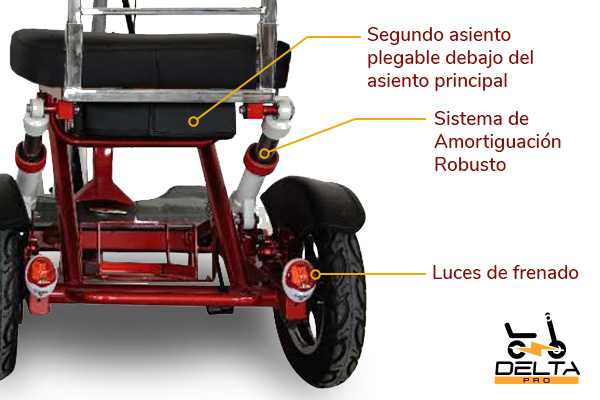 100% plegable Diseñada para transportar a dos pasajeros de manera cómoda y segura.