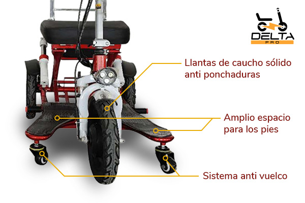 Delta Duo City está fabricado en chasis de acero de muy alta resistencia para soportar prácticamente cualquier terreno y hasta 200 kg de peso y poder transportar a dos personas al mismo tiempo...
