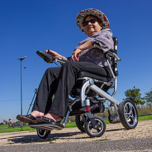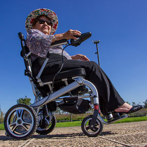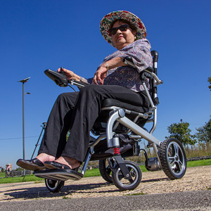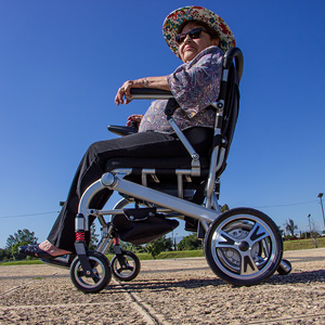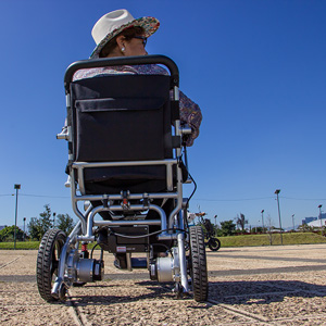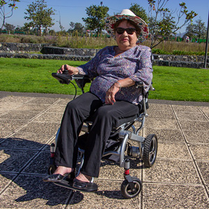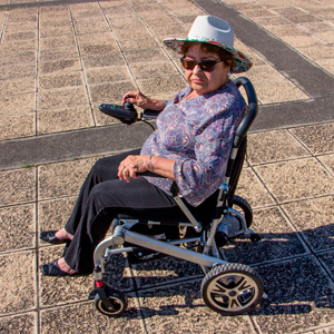 Es una silla de ruedas eléctrica de nueva tecnología que se maneja a través de una palanca de mando. Está diseñada para desplazarse con facilidad, comodidad y total seguridad.